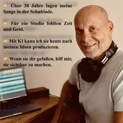 Ich heiße Klaus Kroboth, 56, bin Songwriter seit über 30 Jahren. Mein Projekt KROVA Music umfasst meine Werke, die deutschsprachigen Pop/Folk Stil bevorzugen. Der Fokus liegt dabei auf nachdenkliche tiefere Lyrics, die euch inspirieren sollen. - Wie bist du zur KI-Musik gekommen und welche Tools nutzt du am liebsten?